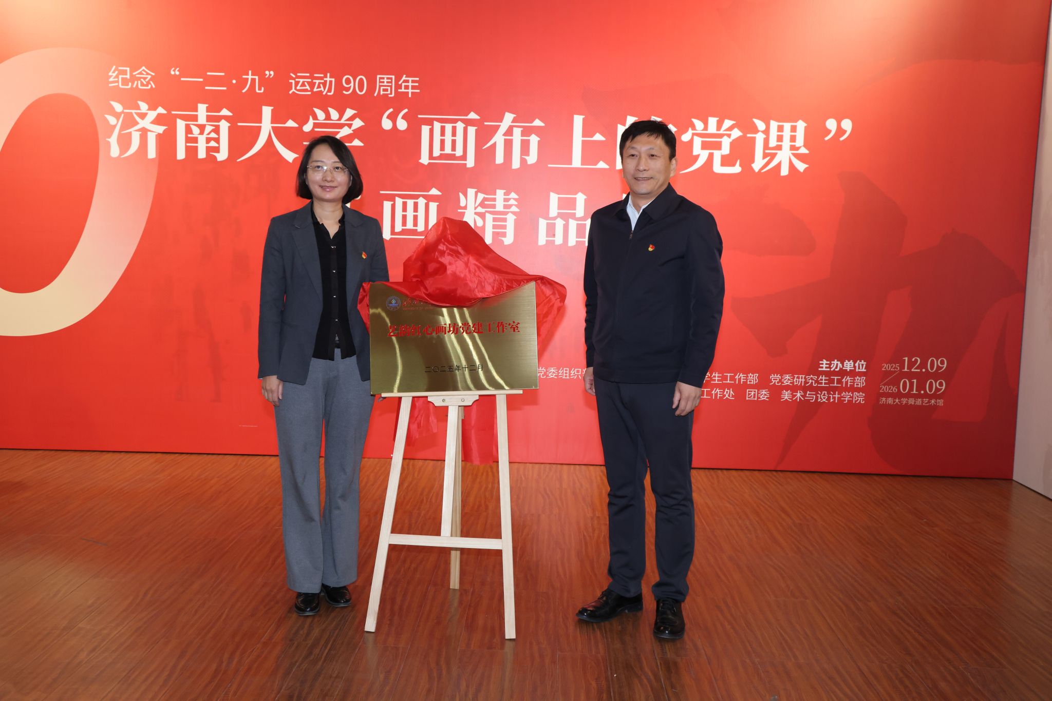 本次“画布上的党课”书画精品展,是学校深入学习贯彻党的二十届四中全会精神,在新的历史起点上赓续和弘扬“一二·九”精神的重要举措。旨在把党的光辉历程、英雄人物和时代风貌“画”在纸上,把济大师生的理想信念、家国情怀和时代担当“写”进心里。把红色资源转化为铸魂育人的鲜活教材。“画布上的党课”书画精品展的举行,是beat365官方网站“党建+美育”工程的生动体现。学校以书画为载体,深入挖掘红色历史内涵,生动诠释民族精神品格,立体呈现时代奋斗印记,统筹打造特色党建品牌,推动“画笔绘初心、党课育新人”转化为可感、可触、可参与的红色文化育人实践,形成具有济大特色的红色美育品牌矩阵。“艺韵红心画坊党建工作室”作为学校推动党建与美育深度融合的平台,今后将紧紧围绕重大时间节点和主题主线,常态化组织开展主题创作、党课联建等活动,努力构建红色美育品牌的长效机制。