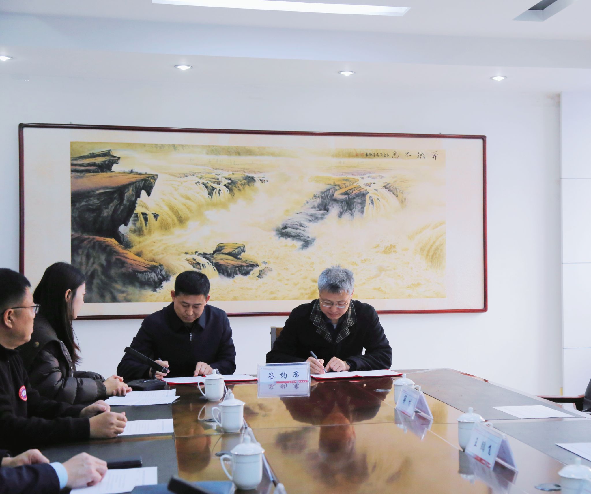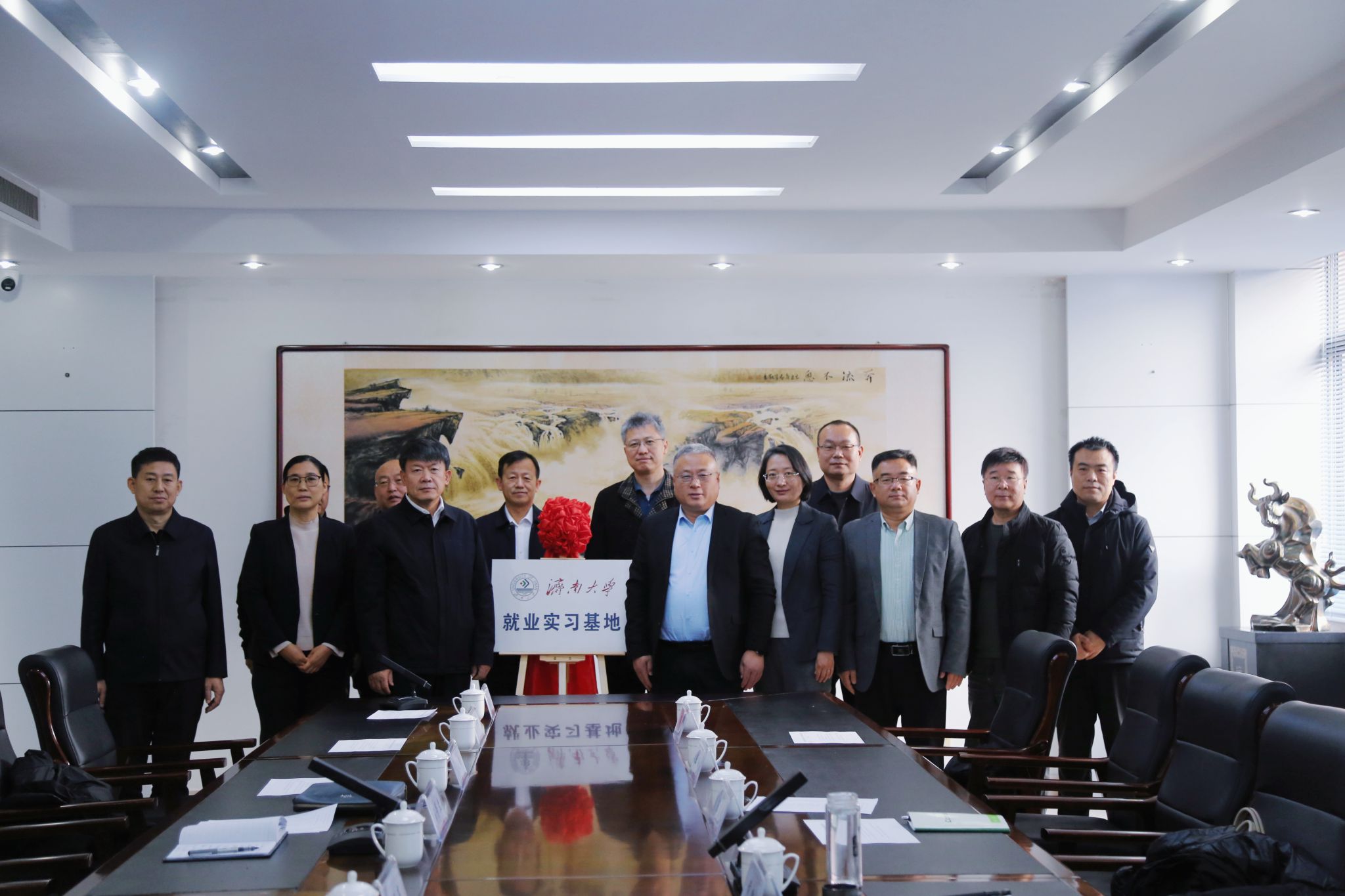 仪式现场,黄加栋与郑振亮共同为beat365官方网站就业实习基地揭牌。合作发展处处长刘振与张滨共同签署beat365官方网站与滨州经济技术开发区文化创意产业合作协议书。