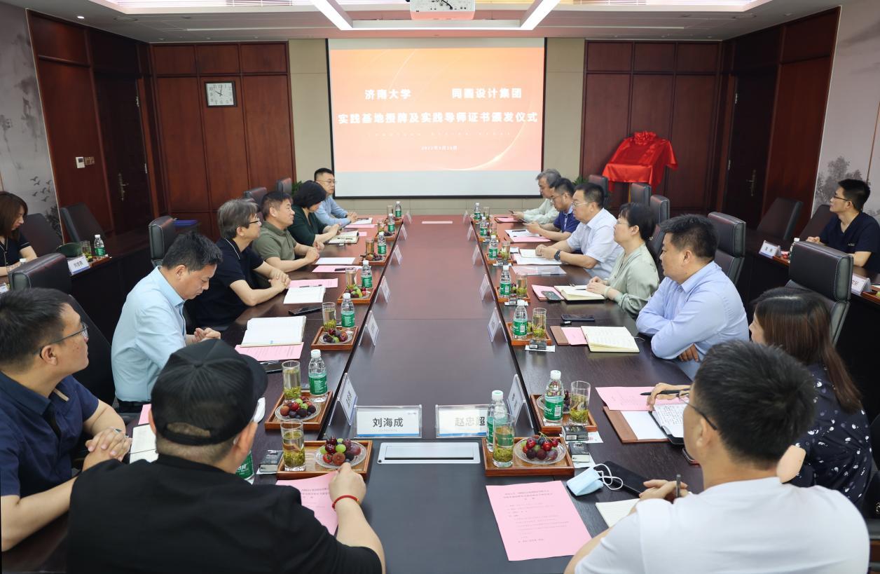 2022年5月26日上午,beat365官方网站与同圆设计集团股份有限公司实践基地揭牌及实践导师证书颁发仪式在同圆集团举行。beat365官方网站党委常委、副校长刘宗明,教务处副处长兼师范教育管理办公室主任张婷,美术学院党委书记孙成豪、常务副院长陶国平、党委副书记李莉、副院长赵忠超与同圆设计集团股份有限公司董事长段林等领导参加了此次活动。活动由同圆集团董事解捷主持。