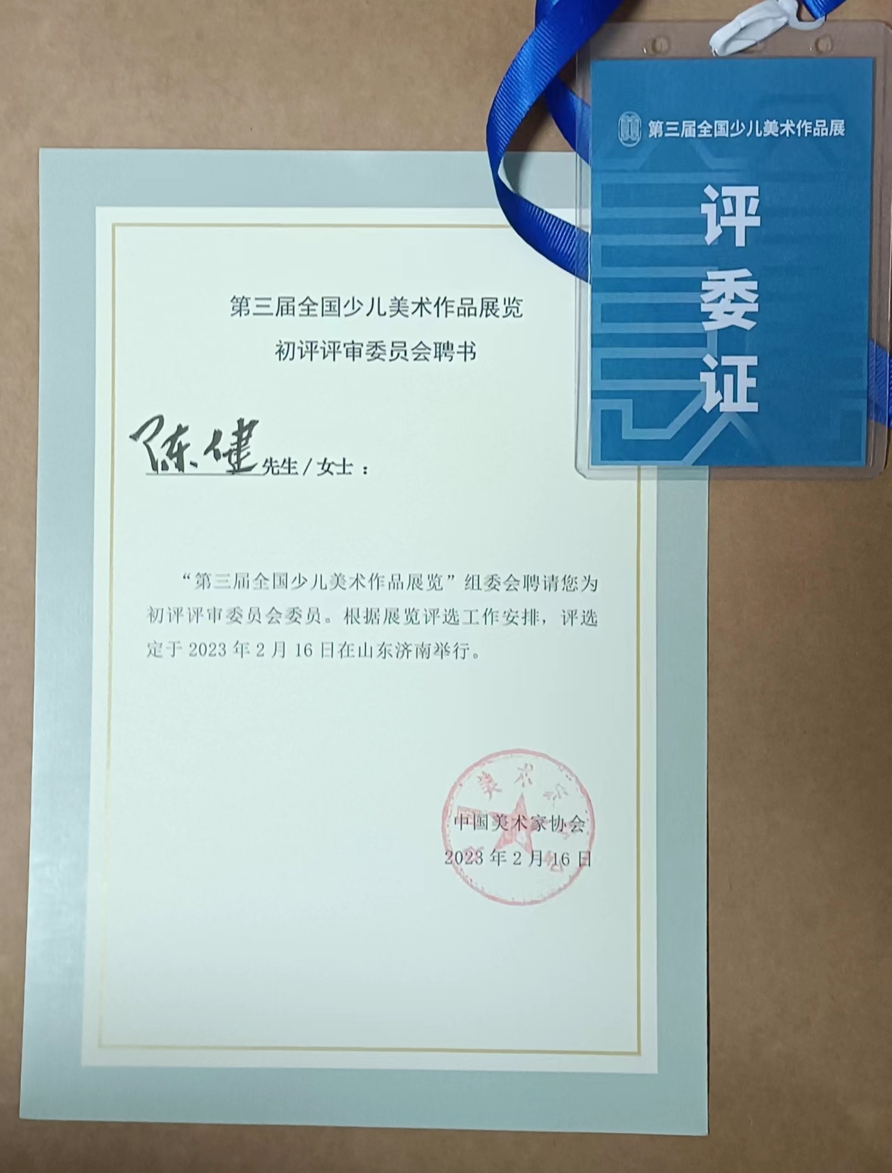 近日,由中国美术家协会和中国民族文化艺术基金会共同主办的“第三届全国少儿美术作品展”评审结束,美术学院陈健教授受邀担任该展评委。