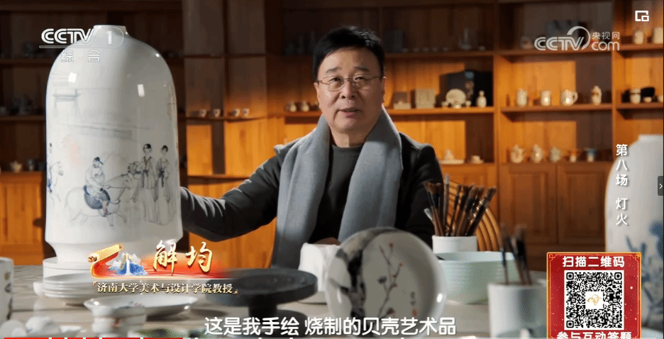 本期节目,解均教授通过对无棣贝瓷的精致刻画,展现出元宵之夜的欢乐景象,引领着观众进入一个充满奇幻与浪漫的世界。用贝瓷这一独特的艺术呈现形式,将“火树银花合,星桥铁锁开”这两句诗词的意境刻画得淋漓尽致。作为出题人,解均教授以“铁锁开”为提示,为选手和观众们提供了精彩的题目,通过问题,引领观众进一步领略中华文化的博大精深。题目既富有文化内涵,又充满趣味性和思考性,让观众在回答问题的过程中,不断加深对中华文化的理解和认识。