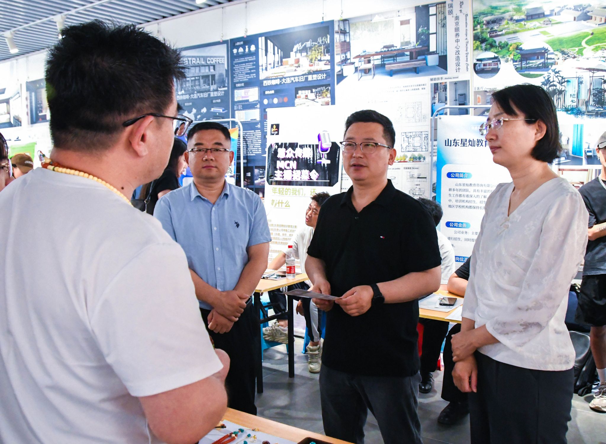 为筹备本次招聘会,学院积极整合资源,依托各个产业协会,邀请会员企业,竭力为学院学生提供更广维度和更宽领域的职业发展资源。此次招聘会共吸引了50余家企业参会,提供就业岗位500余个,包括博科控股集团有限公司、山东省文化创意设计行业协会、山东玖舍文化艺术传媒有限公司、匠为文化科技集团有限公司、济南市章丘明水古城旅游发展有限公司等多家企业和单位。同时,招聘会现场还设立了西部计划、征兵入伍等咨询展位,帮助大学生进行职业生涯规划,推动毕业生高质量就业。