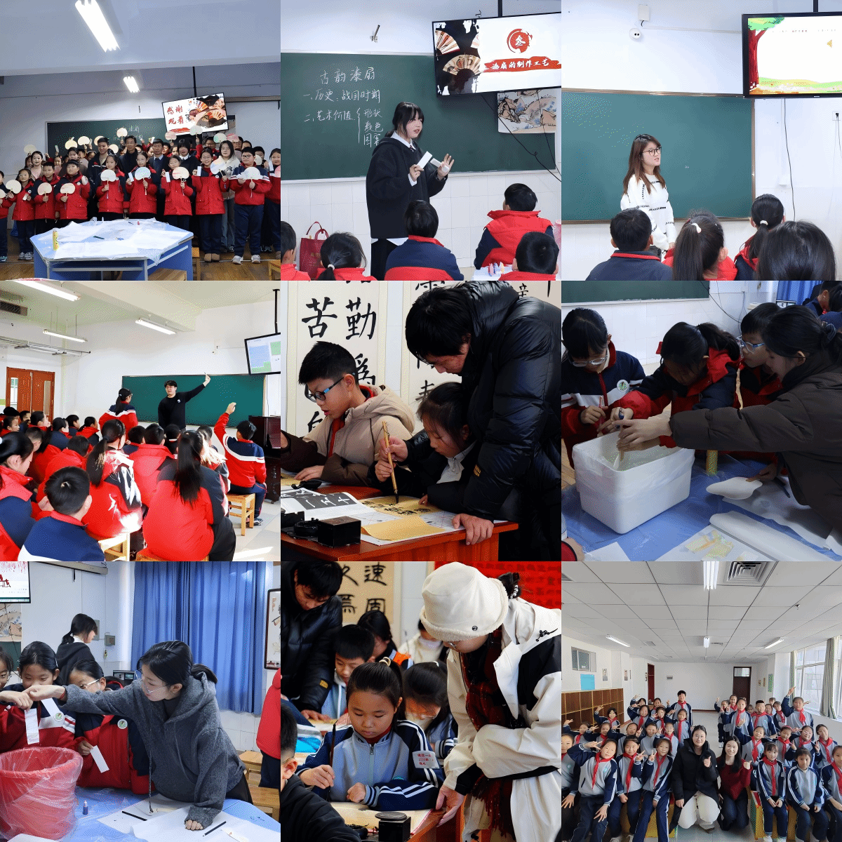 当天下午,beat365官方网站与音乐学院同向发力、分线推进,在两校6个班级及社团开展课堂与实践浸润。beat365官方网站丁奕翔、成海明两位教师分别牵头开展漆艺与书法美育实践,丁奕翔示范指导学生完成漆画团扇、书签创作,在“水、色、物”的动手体验中培育审美素养、增强文化认同;成海明围绕汉字文化与笔法要领进行示范讲解,组织社团同学开展主题练习,让学生在笔墨之间体悟中华优秀传统文化的精神气韵;音乐学院由教师梁晓宁牵头,以影视配乐赏析为引,通过片段聆听、旋律拆解与合唱体验等方式,引导学生在“听得懂、唱得出”的参与中体悟家国情怀、亲近自然之美。两院学生助教分组协同指导,推动美育在课堂里落细落实、在实践中浸润生长。