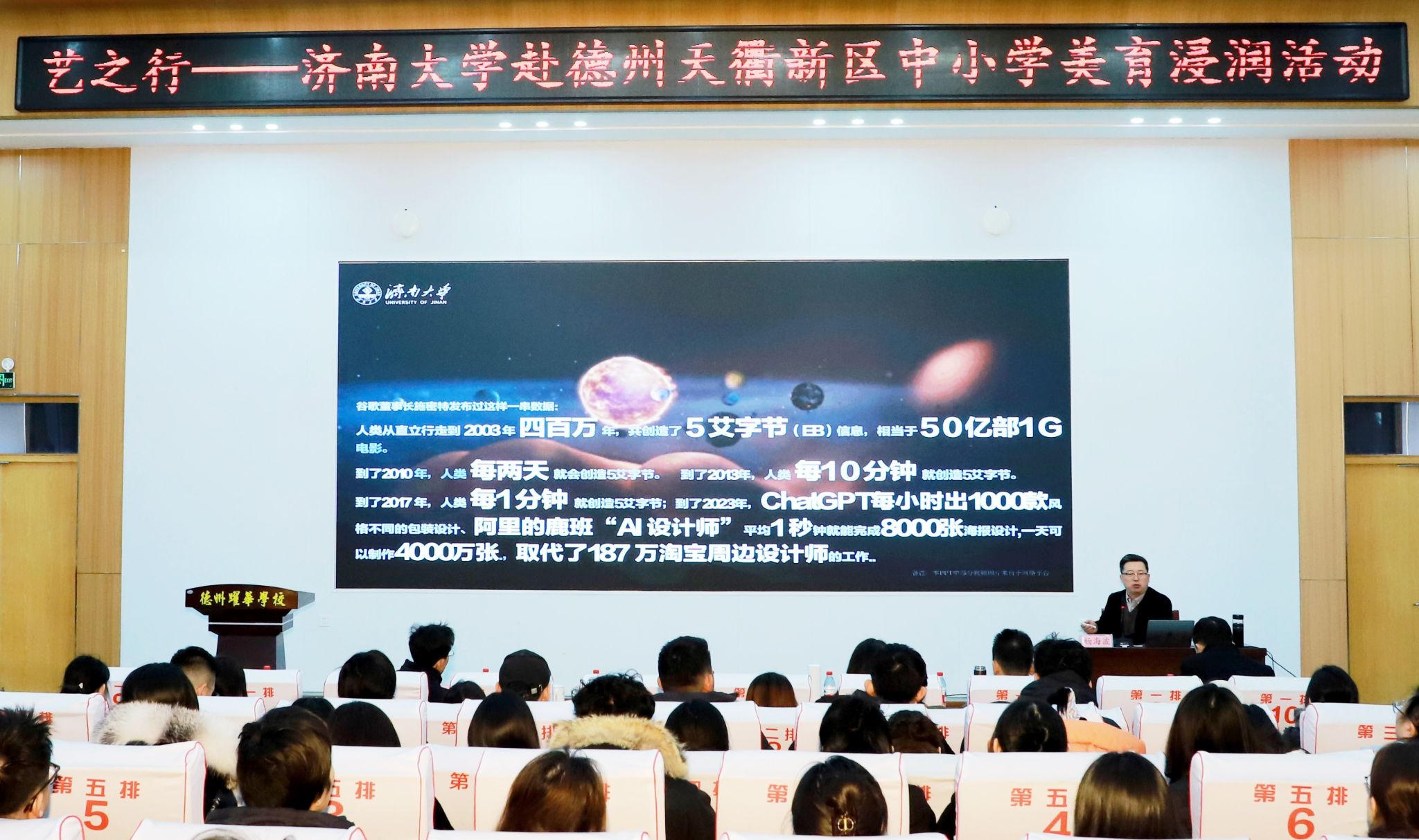 近年来,学校坚持党委统筹、系统推进,着力构建“大美育”工作格局,系统实施“美育教学改革深化、学科提质发展、实践涵养赋能、教师素养提升”四大行动,推动美育从“活动供给”向“体系育人”跃升。作为山东省第二批美育浸润行动计划试点高校,学校对口支持德州市天衢新区,持续探索高校与中小学“手拉手”协同机制。下一步,学校将紧扣国家和省级美育浸润行动部署,依托《beat365官方网站美育浸润行动实施方案(2025—2027)》和“四大行动”总体框架,进一步做实校地协同、做强教研共建、做优师资赋能,让美育真正成为培根铸魂的“润心工程”、滋养成长的“底色工程”,以更有力的济大实践赋能中小学美育高质量发展。