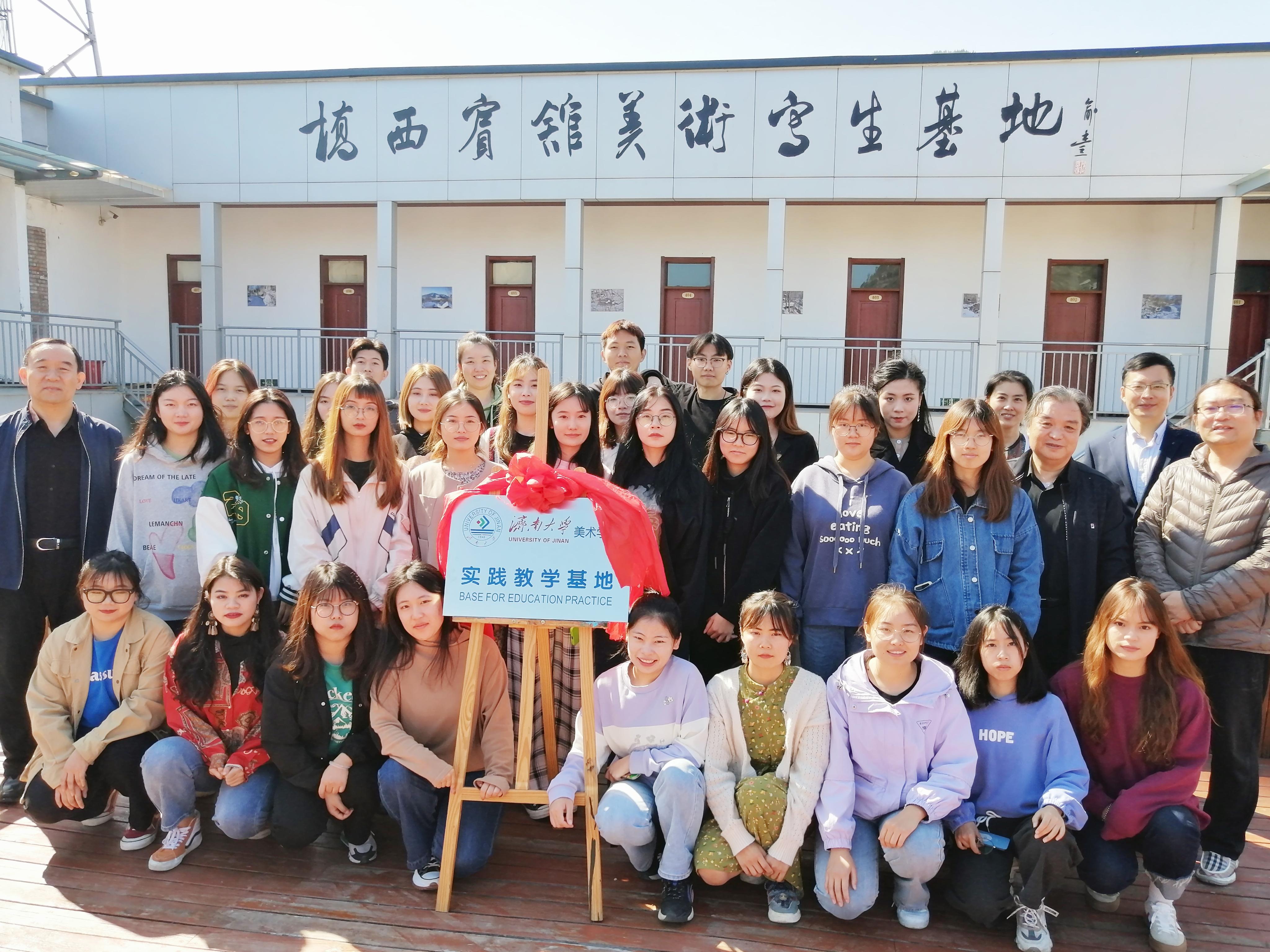 10月13日上午,beat365官方网站beat365官方网站与桥西宾馆美术写生基地举行实践教学基地挂牌仪式。beat365官方网站党委副书记、副院长刘军,副院长陶国平,美术系副主任马立洪,副教授王小飞,团委书记信苏珊,辅导员王琦前往淄博峨庄,共同参加了此次仪式。
