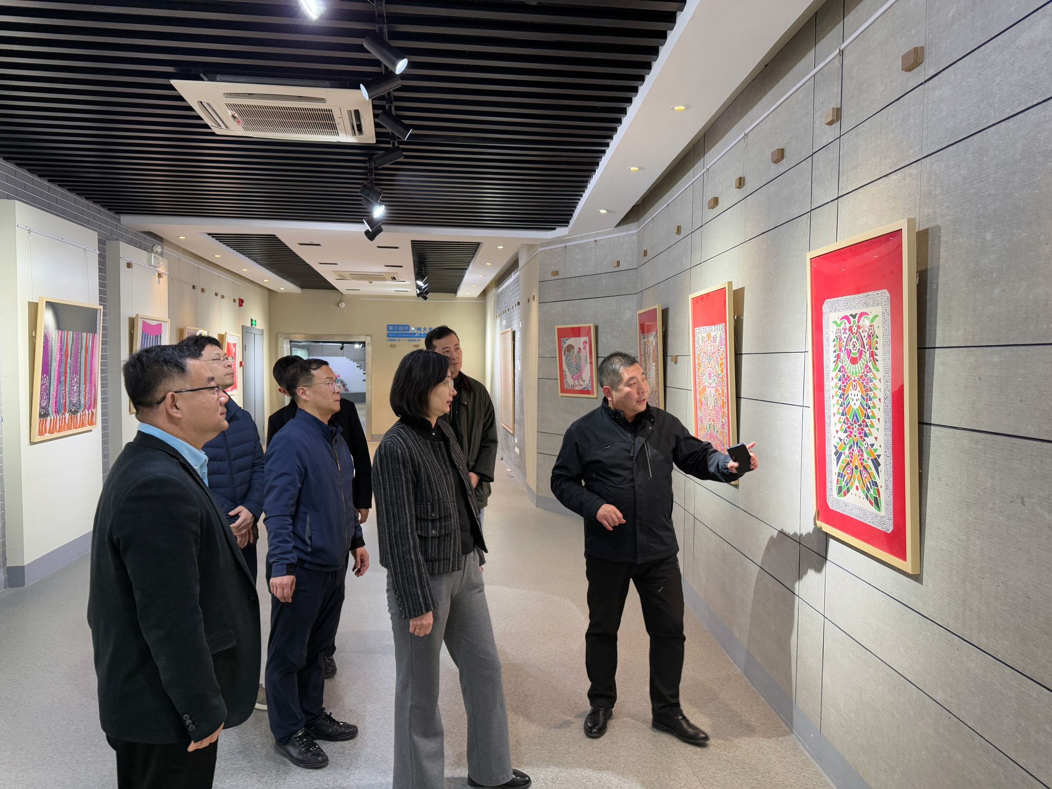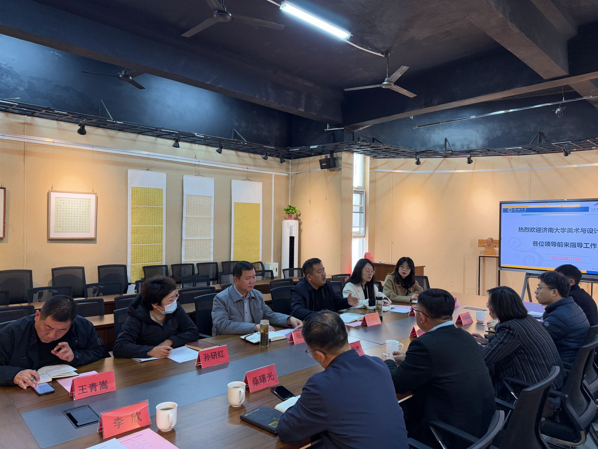会后,调研组一行参观了聊城大学beat365官方网站的展览室、工作室以及正在举办的黄河下游民众服饰展,实地观摩学院的办学实力和文化底蕴。