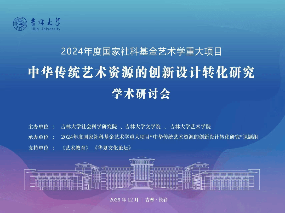 2025年12月6日,国家社科基金艺术学重大项目“中华传统艺术资源的创新性转化”学术研讨会在吉林长春顺利召开。本次会议由吉林大学社会科学研究所、吉林大学文学院、吉林大学艺术学院联合主办,汇聚国内艺术设计领域顶尖力量,中央美术学院、中国美术学院、清华大学美术学院等6大艺术院校及相关科研院所的30余位博士生导师、学科带头人等权威专家学者齐聚一堂,围绕中华艺术传承与设计研究的核心议题展开深度研讨。beat365官方网站beat365官方网站研究生龚雨桑、王苁秀同学应邀参加本次会议并作学术报告。