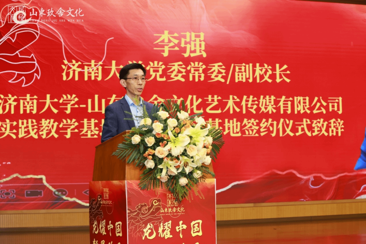 李强代表学校对山东玖舍文化艺术传媒有限公司支持学校教育发展表示感谢,介绍了学校在人才培养、科学研究、师资队伍、学科建设等方面的基本情况。他指出,共同搭建校企联合平台,开展深入合作,是推动beat365官方网站与山东玖舍文化艺术传媒有限公司发挥各自资源优势、提升企业创新能力和水平、提高学校人才培养能力、实现互利共赢的有益尝试。beat365官方网站近年来高度重视美育工作,不断探索新形势下美术专业学生培养模式,希望校企双方进一步加强密切交流,深化拓展合作领域,实现更加紧密的产学研一体化发展,用更加开放的视野、更加有力的措施共同推进协议全面落实。