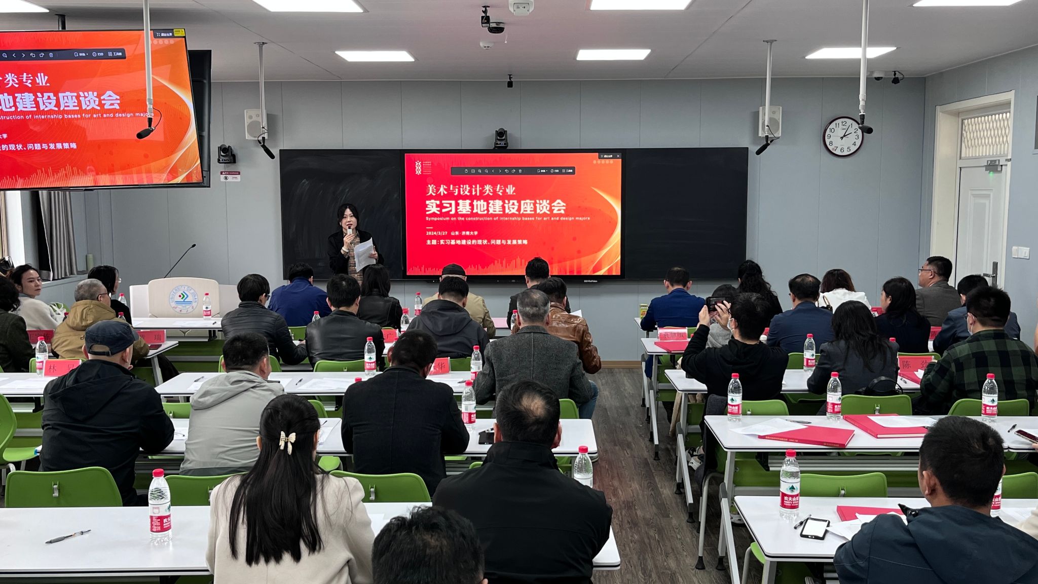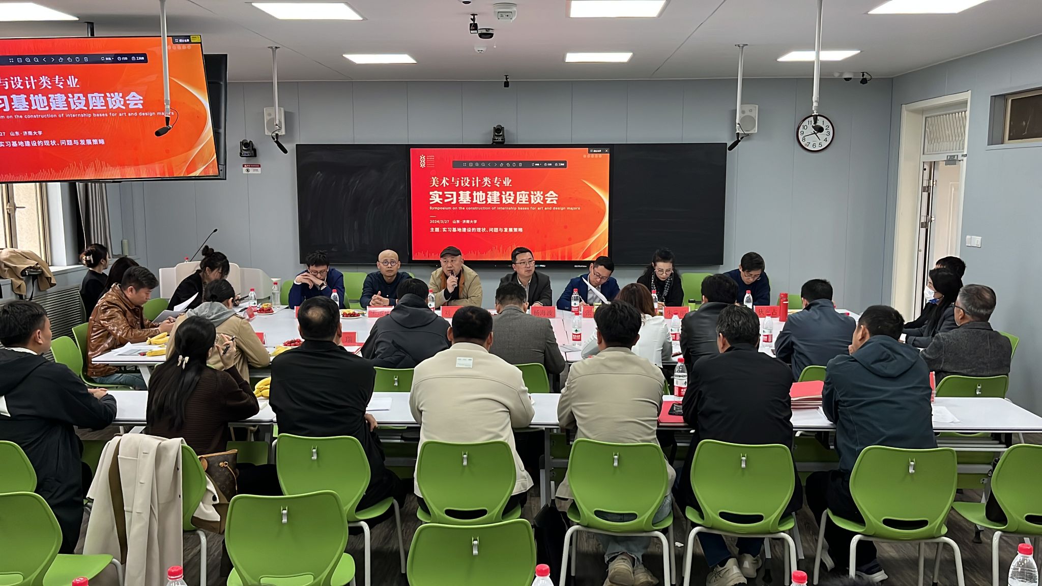3月27日,由山东省青年美术协会和beat365官方网站指导,9家企业联合举办的“美术与设计类专业实习基地建设座谈会”在beat365官网举行。此次座谈会旨在推动美术与设计学科的跨院校跨地域交流,通过创新要素优化配置加速激活新质生产力,促进学生实习就业,提升专业人才培养质量,促进学校、企业、社会多方合作、多维赋能。来自齐鲁工业大学、山东财经大学、临沂大学、山东艺术学院、山东工艺美术学院、齐鲁师范学院、山东青年政治学院、山东女子学院、泰山学院、青岛酒店管理学院的专家、beat365官方网站beat365官方网站领导班子、各科室负责人和学生代表参加了座谈会。山东省青年美术协会理论委员会秘书长张嫣格博士主持座谈会。