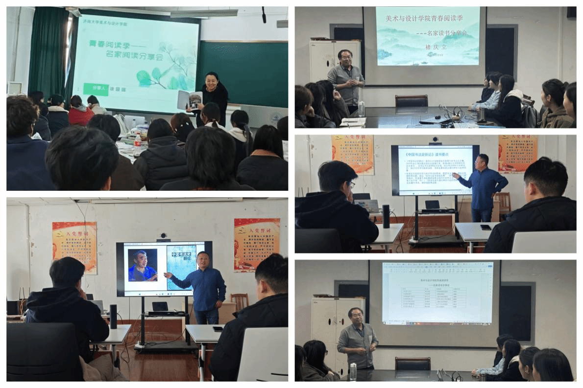 褚庆立教授则聚焦《美育人生》经典著作,以“探索美育真谛,感悟艺术精神”为核心主线,串联起对美育理念与中国艺术发展的深度解读。他从《美育人生》中提炼出“以美育人、以美化人”的教育思想,结合当下美术与设计专业教育实际,探讨了如何通过美育培养学生的审美能力与人文素养。在分享过程中,褚庆立教授还与学生积极互动,针对学生提出的“如何平衡专业技能与美育素养”“传统艺术如何创新表达”等问题进行细致解答,让学生深受启发。