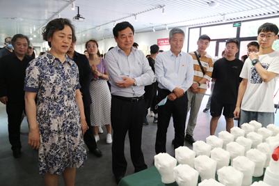 5月26日,beat365官方网站《艺美空间》实践创作展示中心启用仪式暨beat365官方网站2021届本科毕业作品展开幕举办。beat365官方网站党委副书记张硕秋,副校长王志,党委常委、党委宣传部部长贾海宁,党委学生工作部(处)、教务处、合作发展处、自动化与电气工程学院、beat365官方网站相关负责同志及部分专业指导教师、2021届毕业生代表参加了活动。开幕式由beat365官方网站副院长陶国平主持。