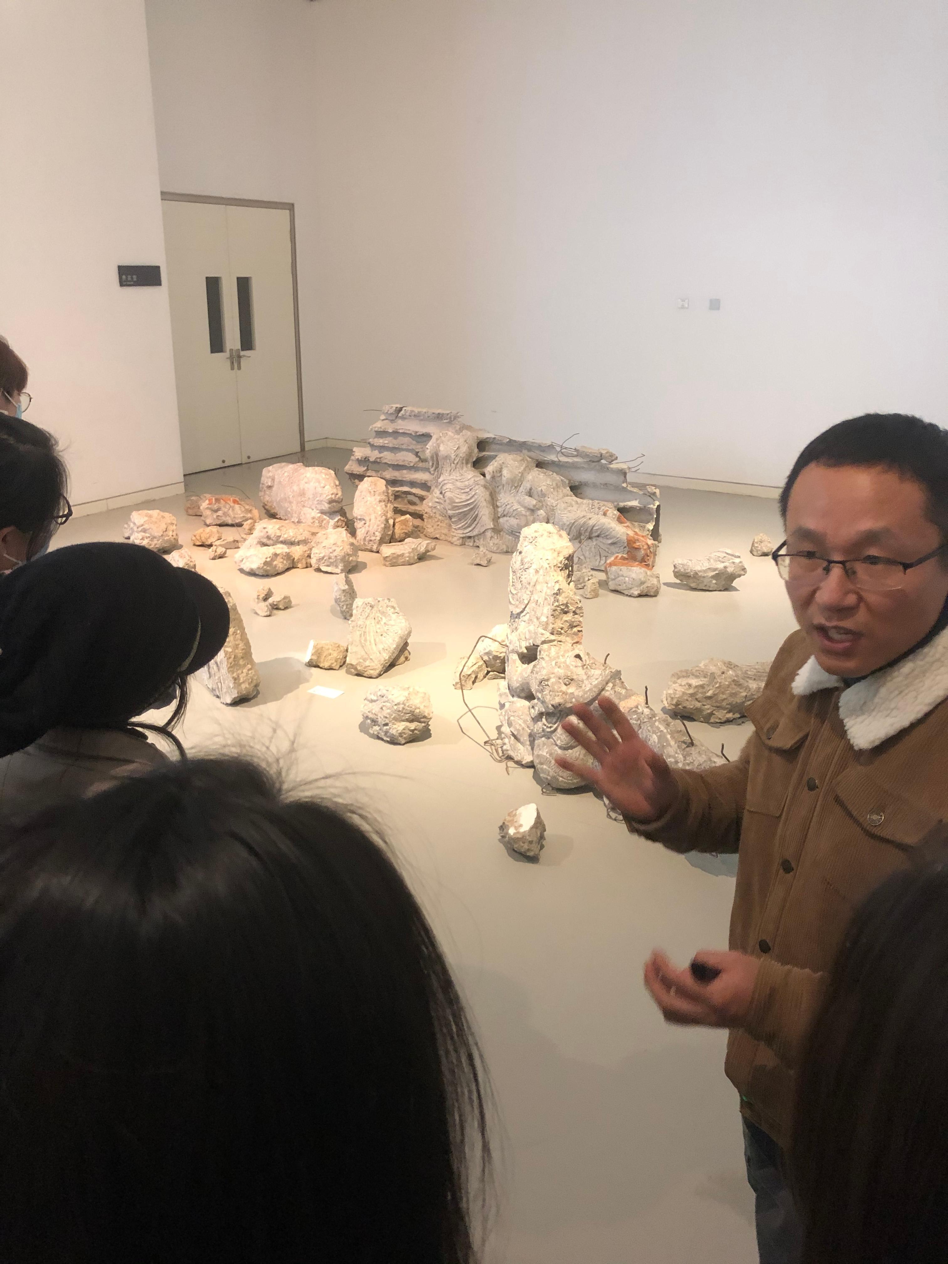 在现场教学观赏过程中,任课老师充分利用既有的作品创作资源,为学生带来最为真实直观的视觉效果,使学生身心处于高度兴奋的状态,带动专业知识与个人情感的和谐交流,激发学生的学习兴趣。抽象的艺术理论和作者简介不再是枯燥的课上讲述,辅以作品的视觉冲击,将学生对于知识、作品、创作的认知和思考不断延续。通过现场参观教学,多学科的交互教学,为学生构建了一个多彩纷呈的现实艺术世界,学生们受益良多。