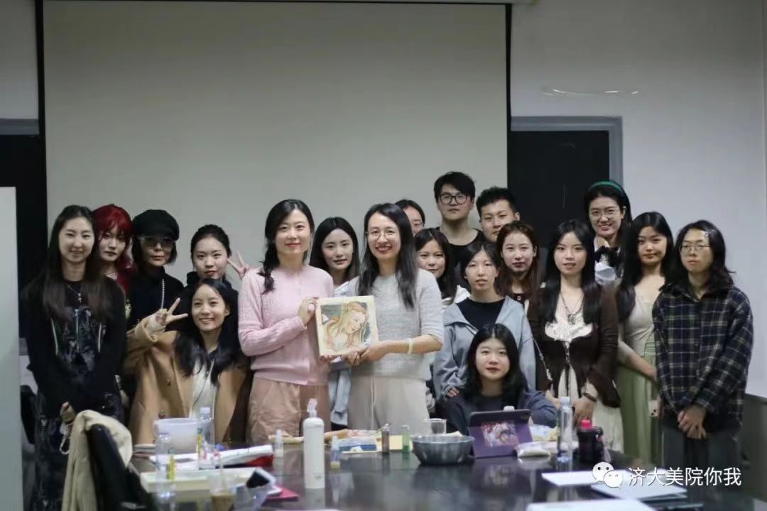 beat365官方网站研究生“艺术美学”系列讲座——王玉华老师湿壁画篇于2023年10月26日19:00点在四教601进行,这场带有学术思考和技法探索的讲座顺利开展了。本次讲座共有三个部分,其一,老师讲解湿壁画制作步骤、所需材料等相关知识。其二、老师带领学生轮流动手实践体验。其三、老师对作品进行调整,对本次活动进行总结。在本次讲座中同学们积极探索,各抒己见,动手实践,开启了一场奇妙的湿壁画之旅。