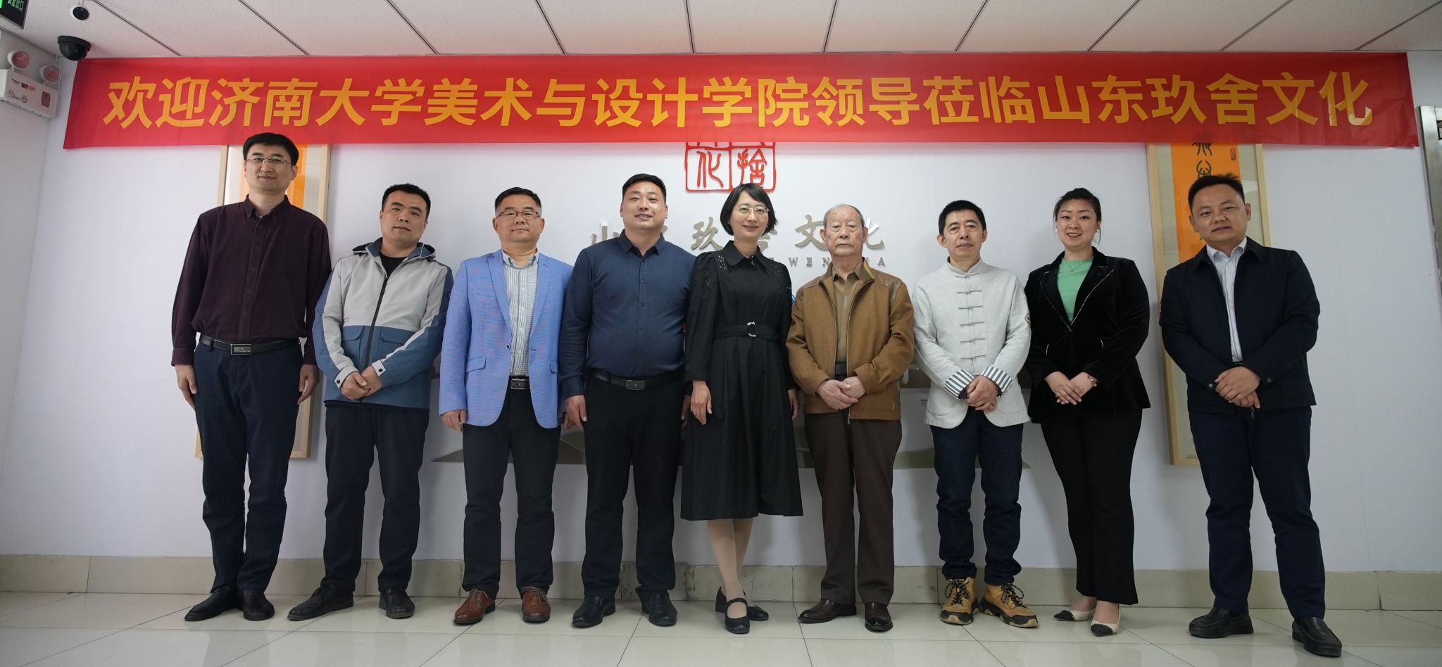 为深入学习贯彻党的二十大精神,坚决实施就业优先战略,深入拓展就业资源,4月11日,beat365官方网站党委书记陈春锋,党委副书记、副院长何贵亮,美术系主任陈炜,学生工作办公室主任王鹏飞,实训中心主任成海明一行5人到山东玖舍文化艺术传媒有限公司进行走访调研,拓展就业渠道,助力毕业生高质量就业。中国孔子书画院周艺,山东玖舍文化艺术传媒有限公司总经理贾南,副总经理陈虹、王帅俊等人进行了热情的接待。