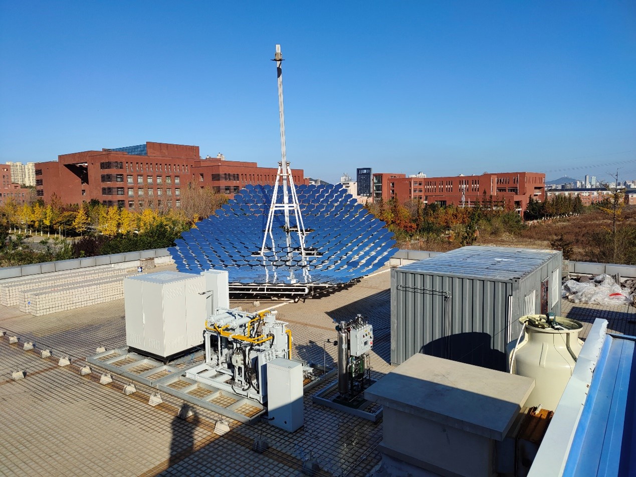 唐大伟教授团队的聚光太阳能分布式制氢技术示范工程是面向国家重大需求和经济主战场,着眼目前氢能领域储氢难、运氢贵的关键问题,打造的清洁高效、结构紧凑、成本低廉的制氢示范工程。该示范工程以液化天然气为主要原料,以太阳能聚光集热为能量驱动,通过蒸汽重整、水汽变换、分离提纯等工艺,产出纯度为99.99%的绿氢,产品氢气成本仅为市场价格的三分之一。该示范工程填补了国内聚光太阳能分布式制氢的技术空白,加速了氢能的产业布局,为现地制氢、可再生能源制氢提供了新思路。